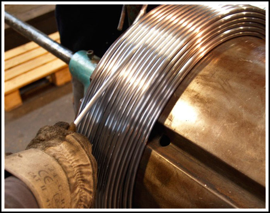 El alambre se fabrica mediante extrusión. La prensa empuja el material hacia una línea o matriz, proporcionando la forma de sección transversal deseada,