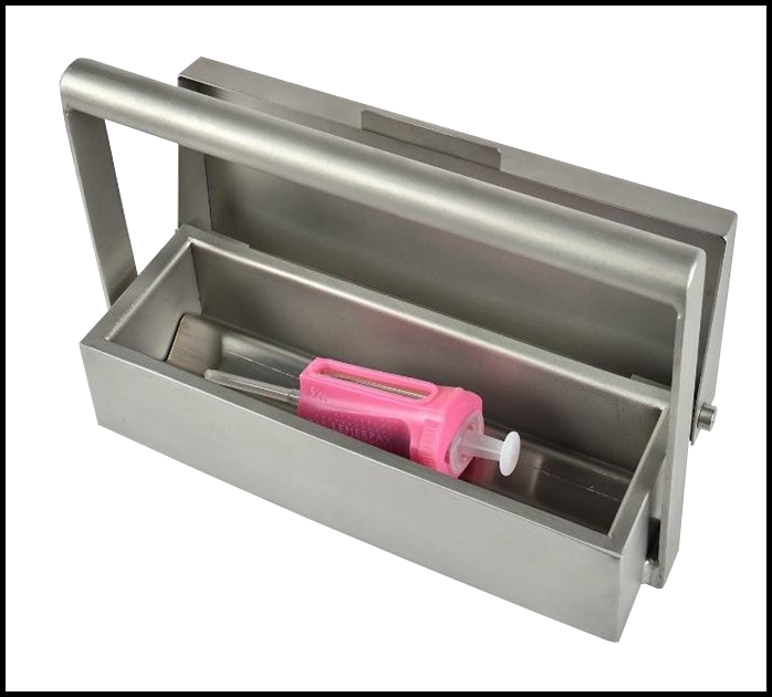 Los contenedores revestidos de plomo posibilitan almacenar radiofármacos y otros materiales radiactivos. Se fabrican de acuerdo a las especificaciones del cliente para adaptarlos a sus necesidades (equipos y materiales).